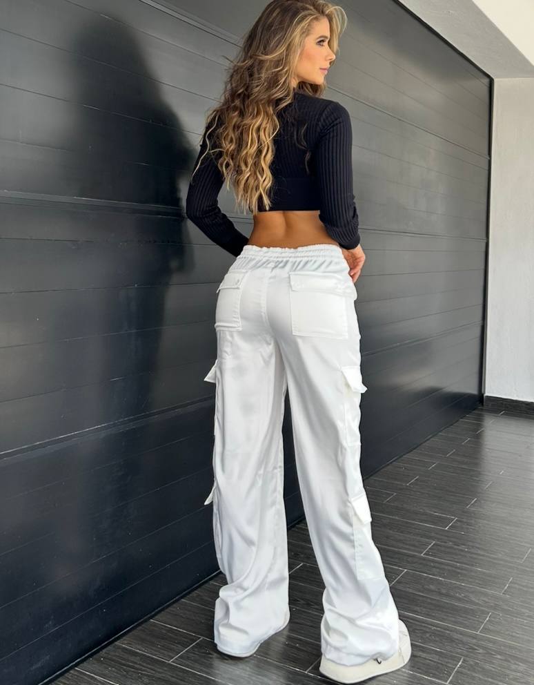 Pantalón Cargo Satén Grueso Blanco