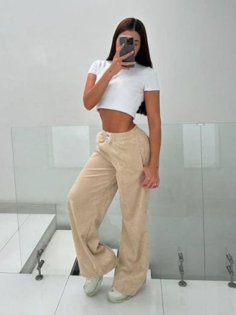 Este pantalón sudadera de corduroy en beige natural es la elección perfecta para un estilo relajado y funcional. Confeccionado en tejido acanalado de alta calidad, ofrece comodidad y durabilidad para uso diario. Su cintura elástica y ajuste cómodo lo hacen ideal para looks casuales, días frescos o paseos informales.